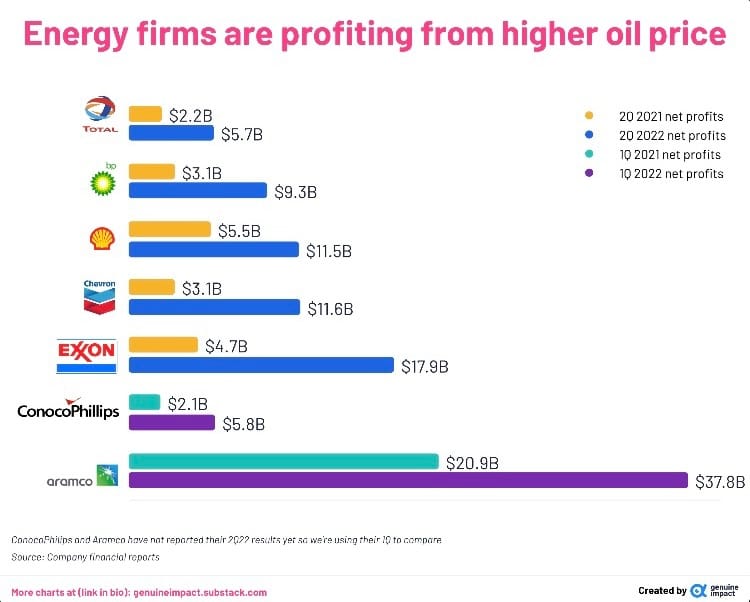 I mean, we know they're making bank don't we. We're all paying through the nose for our energy and fuel right now, and producers are fuckin' loving it. Here's a snapshot of the recent profit announcements.